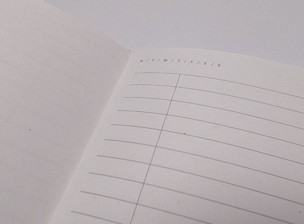 We've tested and researched hundreds of planners, paper types and materials. We knew we wanted to design something that was as functional as it was beautiful - sustainable yet luxurious. We visited countless suppliers until we found our perfect partner, a family workshop in England that obsesses over details like we do. The challenge? Making sustainable materials look premium, not recycled.